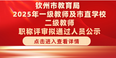 2025年度中小学教师系列钦州市一级教师职称以及市直学校二级教师职称评审拟通过人员公示