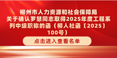 关于确认罗慧同志取得2025年度工程系列中级职称的函(柳人社函〔2025〕100号)