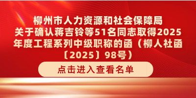 关于确认蒋吉铃等51名同志取得2025年度工程系列中级职称的函(柳人社函〔2025〕98号)