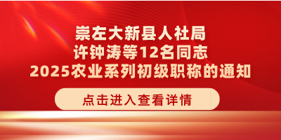 崇左市工程技术专业职称改革工作领导小组 办公室关于对2025年度工程系列中、初级职称 评审结果进行公示的公告 2025-12-25 10:00 来源:崇左
