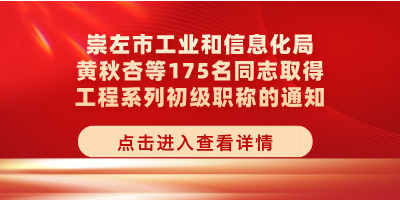 崇左市工业和信息化局关于黄秋杏等175名同志取得工程系列初级职称的通知