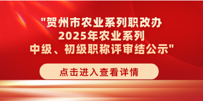 贺州市农业系列职称改革工作领导小组关于对2025年度贺州市农业系列中级、初级职称评审结果进行公示的公告 2025-12-15 11:28 来源:贺州市农