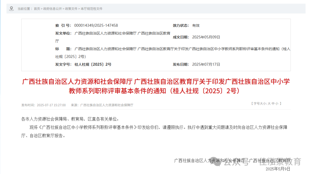 2026年广西中小学教师系列-正高级职称评审条件(桂人社规〔2025〕2号)